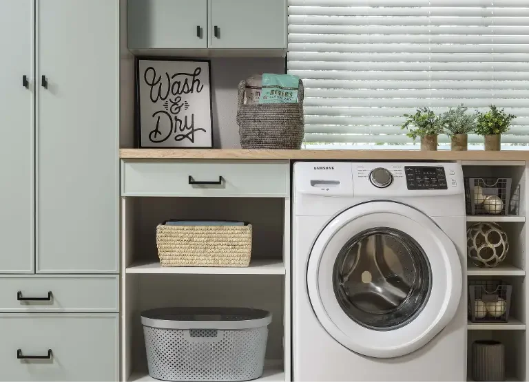 From pull-out hampers to overhead storage, we create attractive, functional laundry and washrooms that make everyday chores easier—and your space more beautiful.