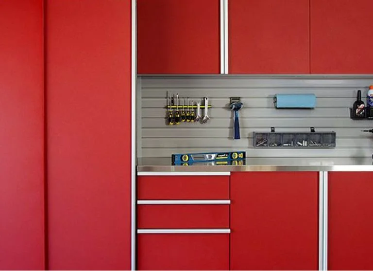 Our premium garage cabinets combine durability, functionality, and design flexibility. Built with ¾” commercial-grade materials and fully integrated backs, these cabinets won’t chip, warp, or fail under pressure—and they’re backed by a lifetime guarantee.